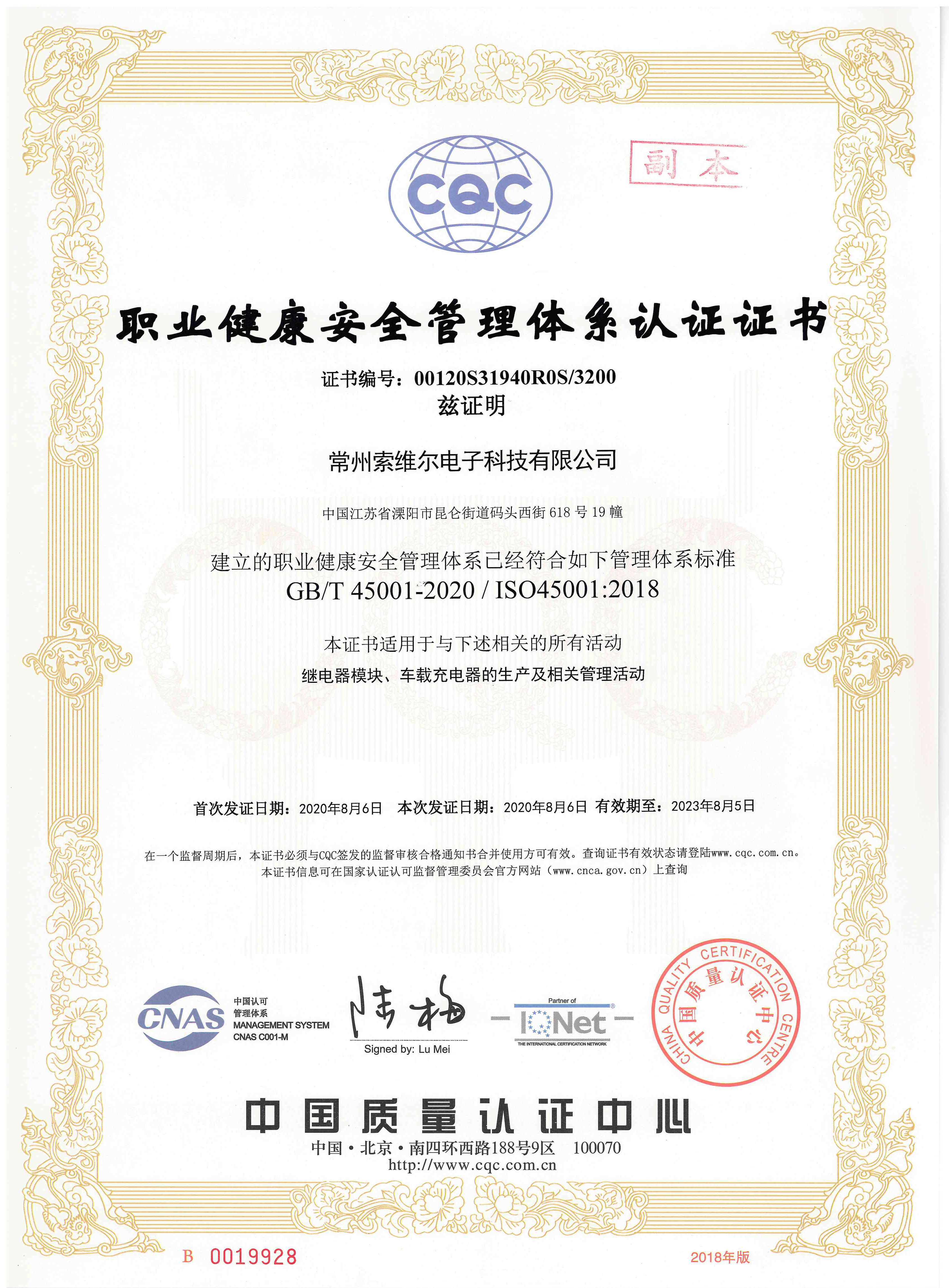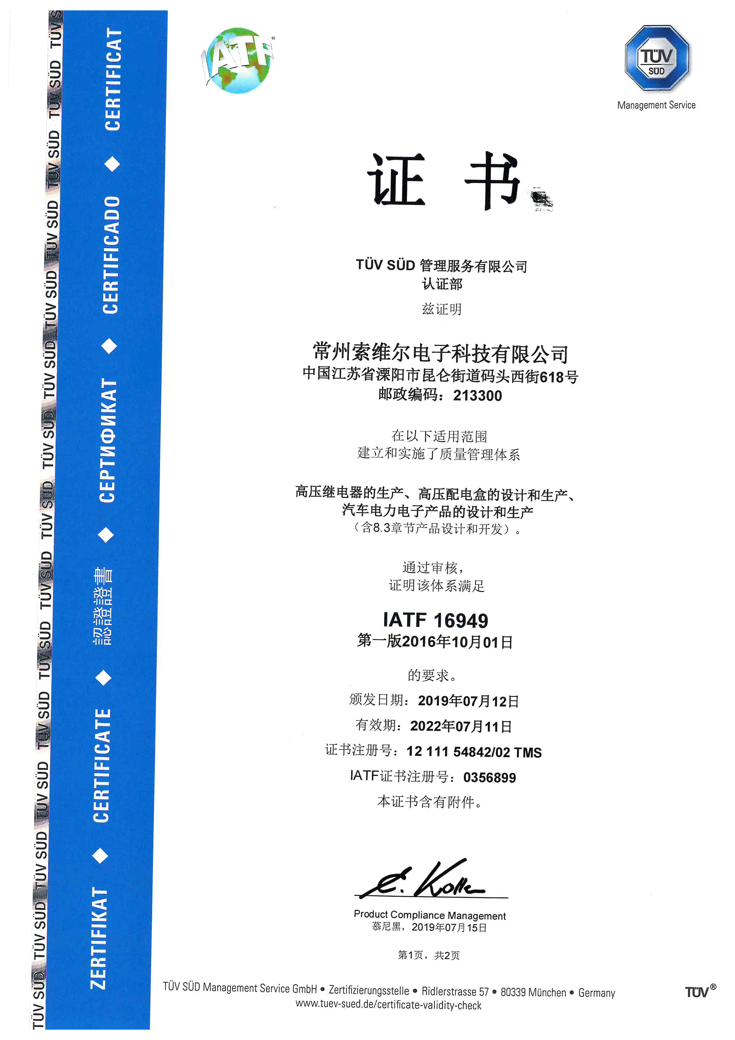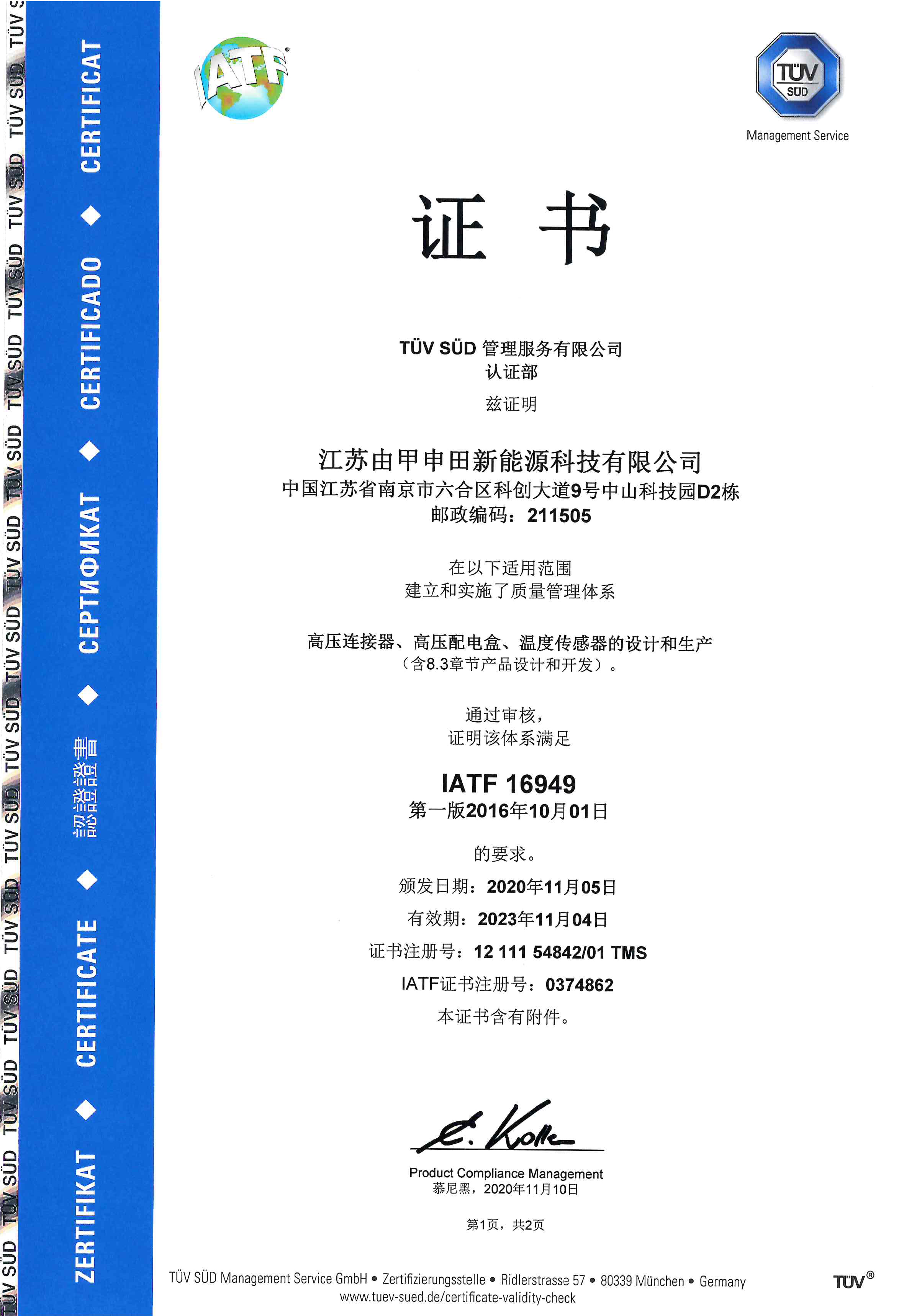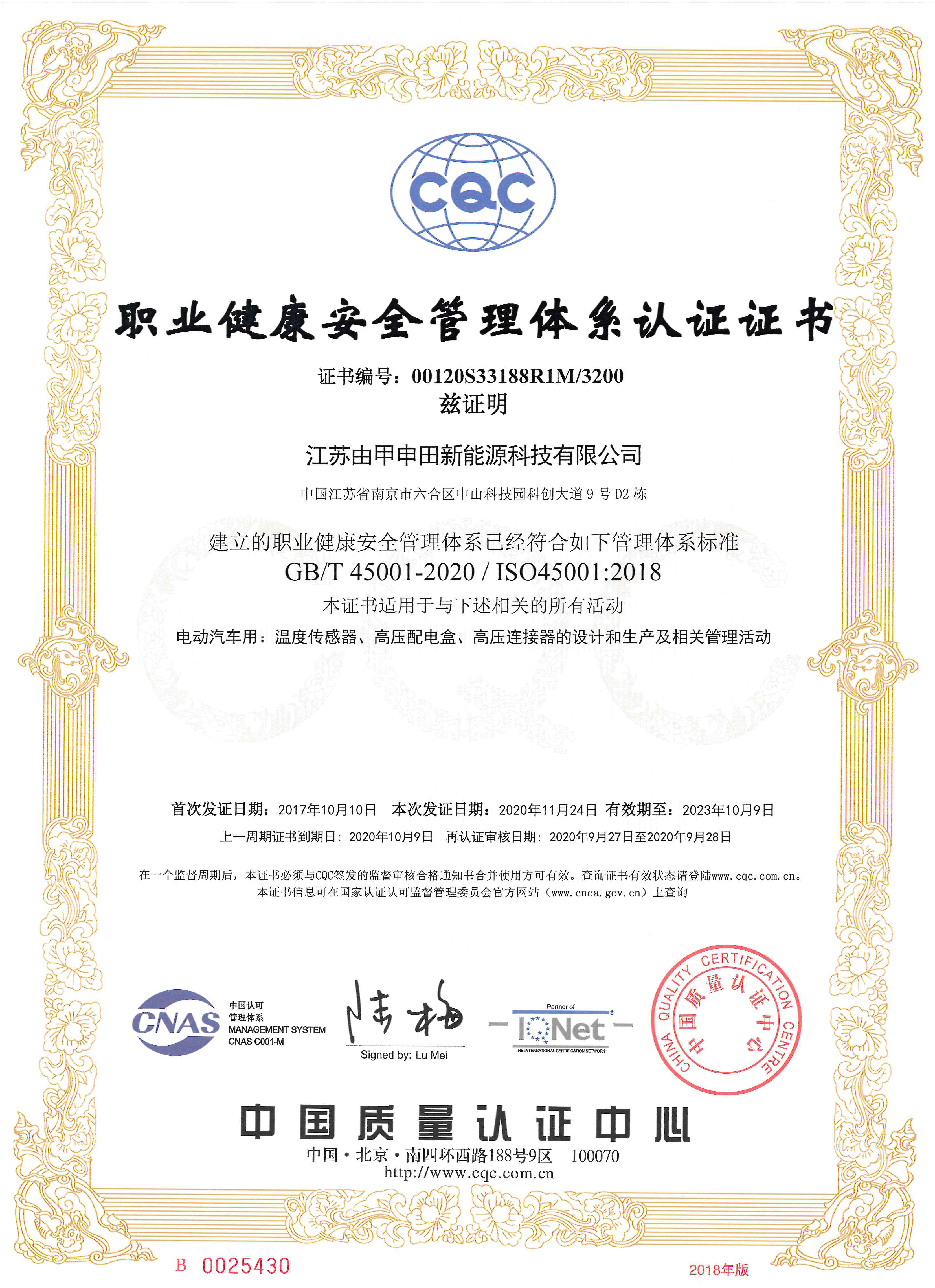 江蘇是為科技有限公司建立了完整的質(zhì)量管理體系,獲得了IATF16949、ISO9001、ISO14001、ISO45001等體系認(rèn)證。